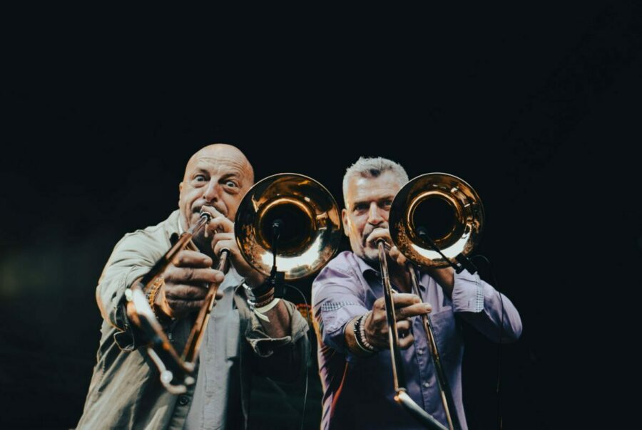 Depuis des années, Philippe et Christophe sont les inséparables fournisseurs de lignes de cuivres ensoleillés. Leurs trompettes et trombones (et bien d’autres instruments à embouchures) ont déjà fait merveille avec Sinsémilia ou Sergent Garcia… C’est maintenant Ensemble !!! qui a la chance d’en profiter.